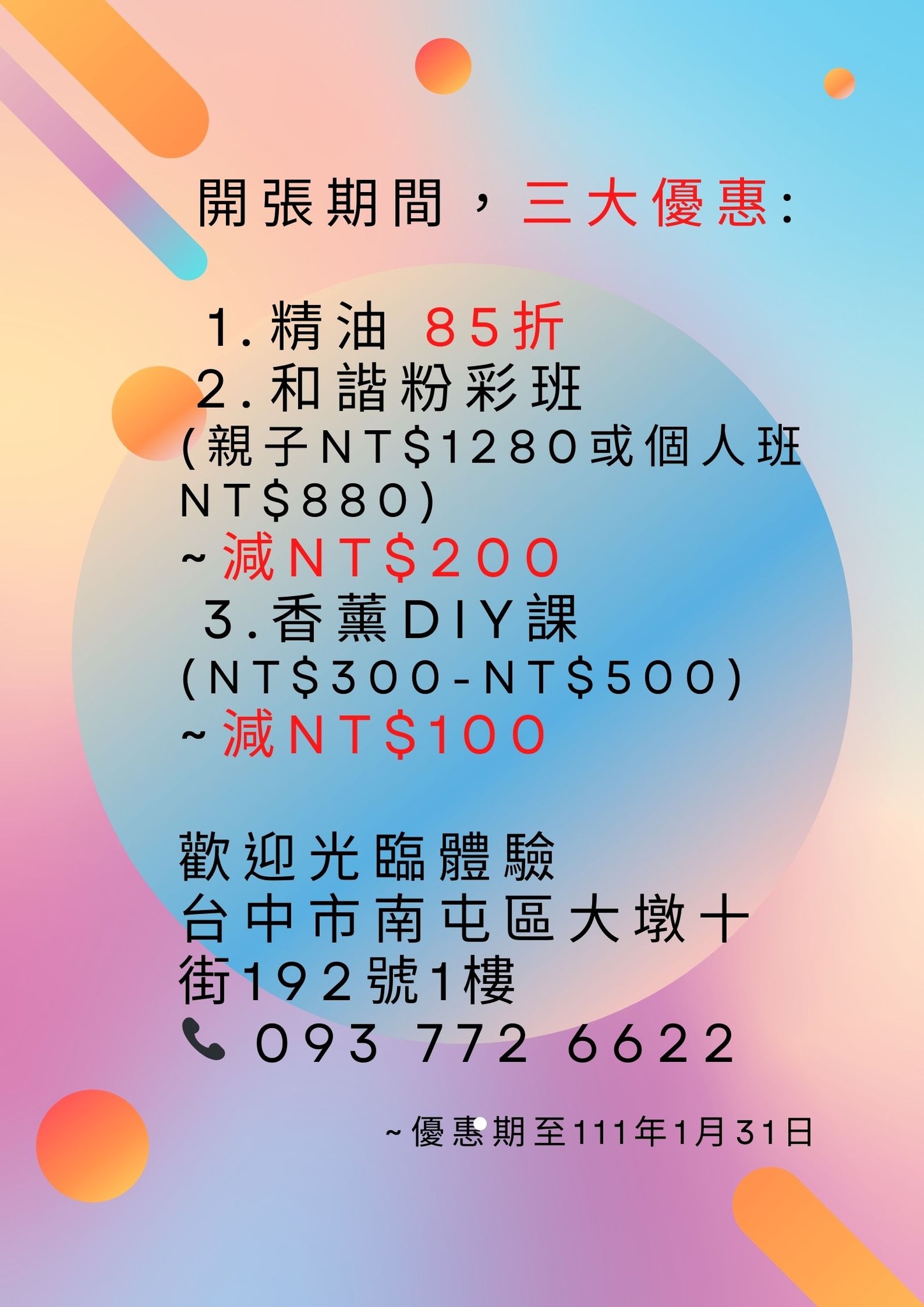 開張期間,三大優惠: